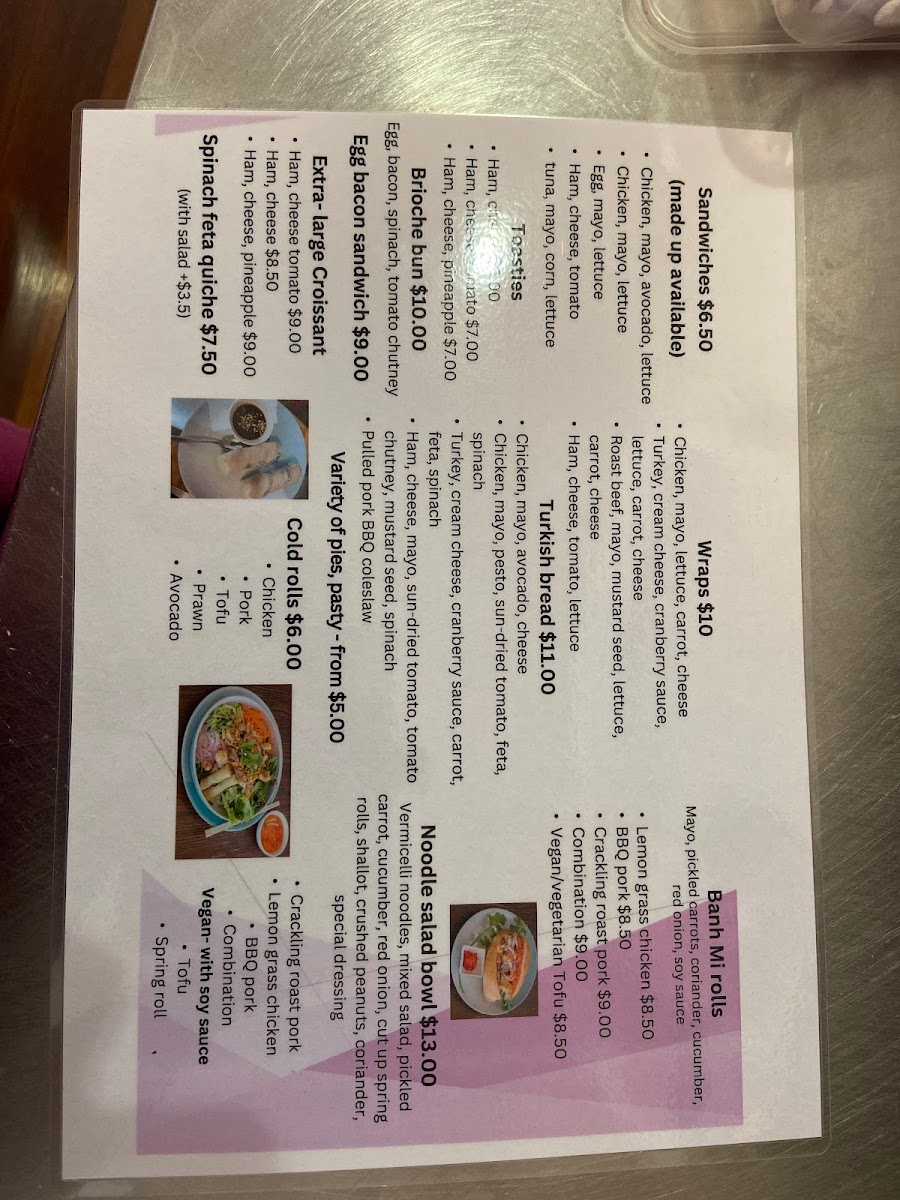 The menu is a vibrant mix, featuring flavorful Vietnamese rolls stuffed with roasted pork, tofu, BBQ pork, and chicken, alongside refreshing cold rolls and hearty salad bowls—all priced at an inviting A$7.00. Sandwich lovers will appreciate the freshly made sandwiches and Turkish bread available for A$5.00. For a sweet treat, indulge in their delectable cakes starting at just A$3.00.